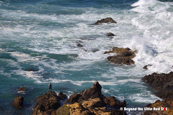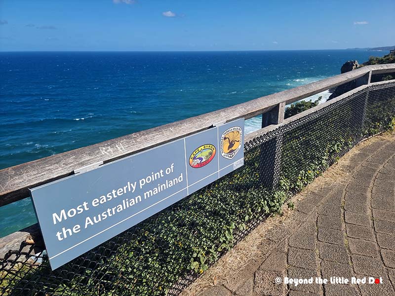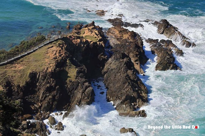 View of the lighthouse from visitors’ center. It was perfect weather that day.I wonder if anyone mails letters from this postbox.From the lighthouse you can follow the nature trail which will take you to Cape Byron.Viewing Cape Byron from the top of the trail. The huge waves pounding on the rocks is just incredible.Zooming in on the guy fishing from the rocks on Cape Byron. Dolphins can be seen sheltering in the calmer waters of the bay. During the whale migration season, you can also see humpback whales.In the distance is Julian Rocks which are a nature reserve and also a great spot for diving and snorkeling. You can see sharks and stingrays here.
